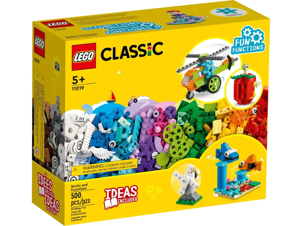 Maak LEGO® modellen met verschillende functies – De LEGO Classic Stenen en functies (11019) speelset bevat kleurrijke LEGO stenen en 7 minimodellen met door tandwielen aangedreven functies